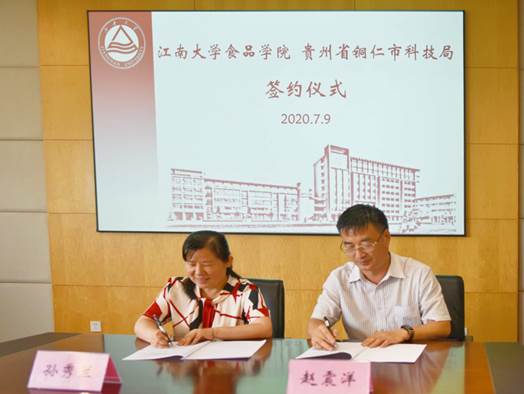 会上,刘元法院长代表学院向赵震洋局长一行的到来表示热烈欢迎,学院与铜仁市的合作交流有多年的历史,合作成果丰富;学院一直鼓励和支持科研人员与铜仁企业技术合作、科研攻关,为铜仁市食品产业发展提供智力支持。随后,赵震洋局长讲话,介绍了铜仁市产业发展现状和配套政策情况,提出天麻、油茶等当地丰富特色农产品加工的迫切需求,希望双方建立长期合作机制,促进铜仁食品产业更高质量发展,为铜仁市打赢脱贫攻坚战贡献力量。院长助理程力介绍了学院情况和企业合作情况。最后,双方共同签署了铜仁市科技局-麻豆tv