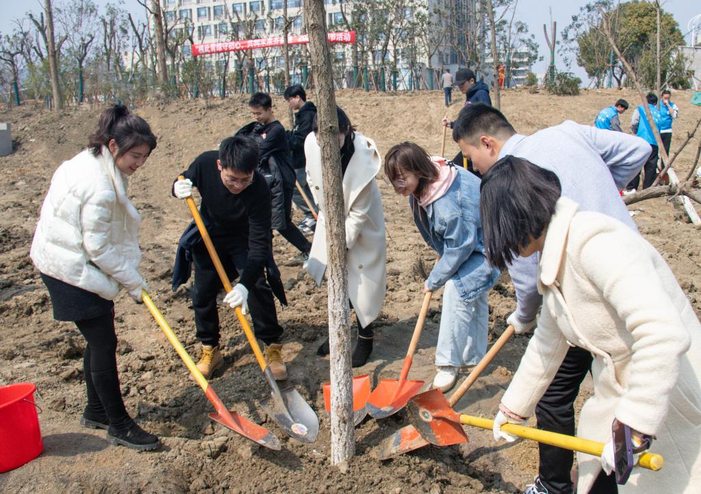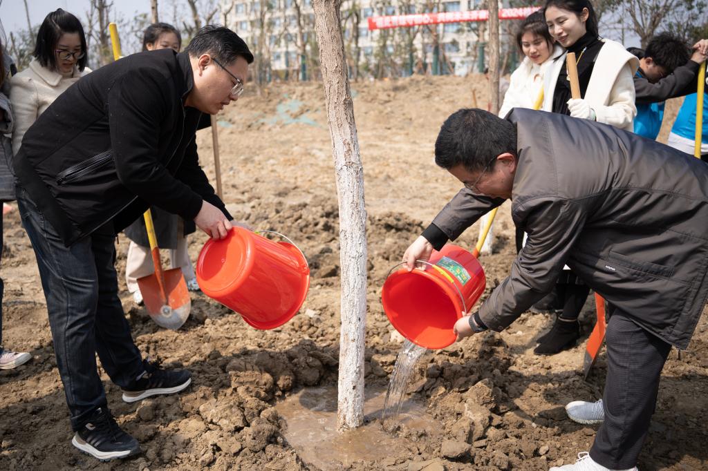 、理学院、人工智能与计算机学院在臻善楼西北侧共同举办“植此青绿守初心,共树未来齐奋进”植树节活动。麻豆tv