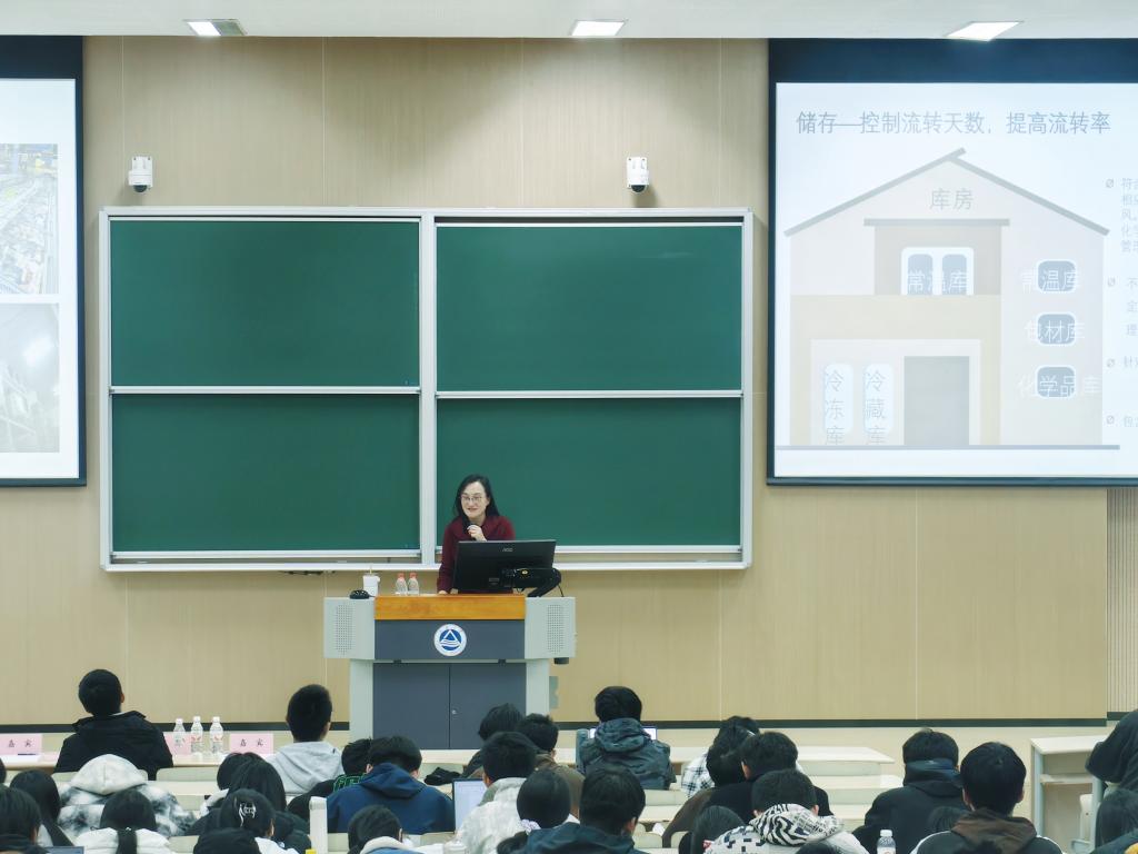讲座中,朱老师以“时时在线的质量管理”为主题,串联其四段代表性职业经历,生动详实地阐释了质量管理在食品产业链中的核心作用。她注重与同学们的课堂互动,以“超市冻品区通常位于超市深处还是收银处”这一贴近生活的问题为引,引导学生展开讨论,并借此生动讲解了质量案件的分析思路与方法,强调质量管理需贯穿于产品从生产到消费的每一个环节。