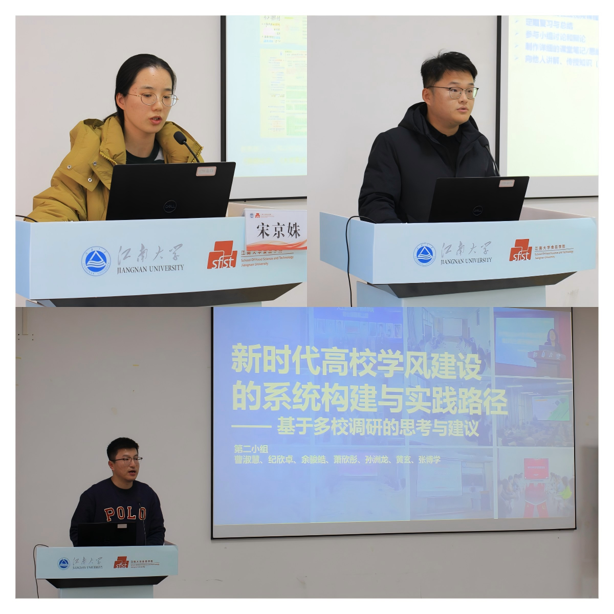 在分组研讨环节,三个小组围绕“问题识别、经验凝练、体系构建”三大方向,结合前期调研与工作实际进行了深度交流。汇报阶段宋京姝、纪欣卓、魏潘晨三位老师代表各组进行分享,内容涵盖学风建设中的现实困境、有效做法与系统构想,展现出辅导员队伍在学业支持一线实践中的思考与创新。